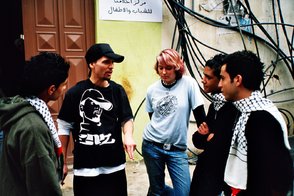 Enz und Yasmin mit den Rappern von I-Voice in Beirut und vor dem Jugendzentrum im Lager Bourj al Barajne