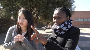 Auf die Frage von Yoko, wie sie es geschafft hat, Stewardess zu werden, erzählt Monggie über den langen Kampf um Gleichberechtigung in Südafrika - über den gesellschaftlichen und kulturellen Widerstand gegen die Apartheit, in dem sie aufgewachsen ist.