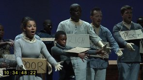 Im Gespräch mit Fabian und Yoko verbindet Monggei ihre eigene Geschichte mit dem Schluss des dritten Aktes der Oper. "Meine Mutter sagte immer: die Farbe des Blutes in jedem Menschen ist rot. Wir kommen alle gleich auf die Welt und wir verlassen sie alle auf gleiche Weise... "There is still a lot of work to be done – not only in South-Africa. And through This New Ocean this dream can taken further on"